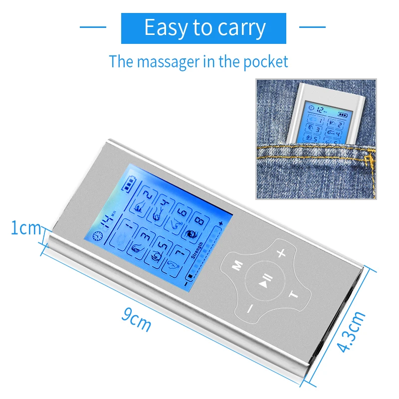 Mini English Dual Channel 8 Modes Tens Unit Electronic Therapy Body Neck Massager Pulse Meridian Machine Muscle Stimulator